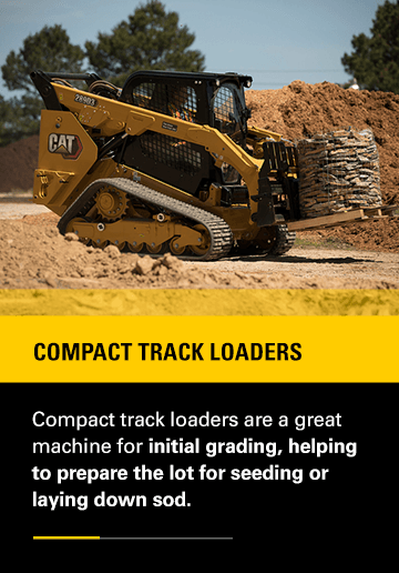 Compact track loaders use rubber tracks for better stability on uneven or muddy ground. They’re excellent for grading larger lots, preparing lawns for sod, and working in wet conditions. In winter, they double as snow removal equipment.